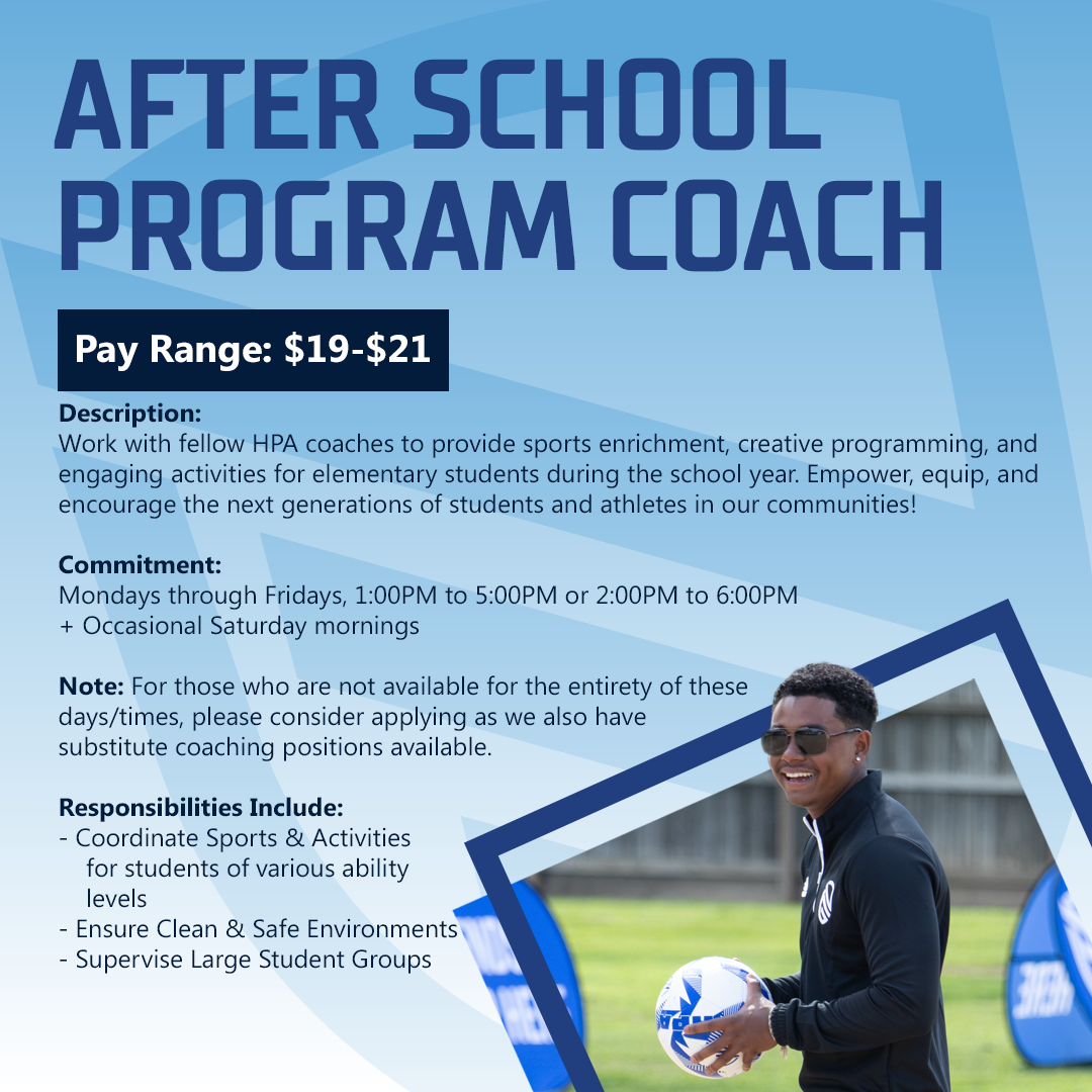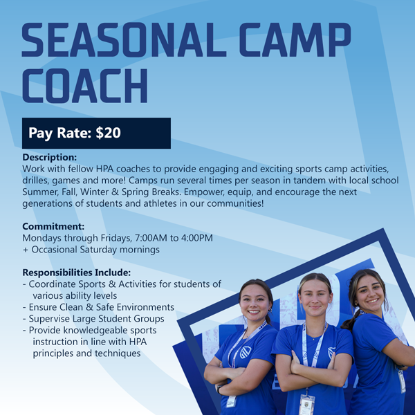 As a member of our team, you’ll have the opportunity to gain valuable experience in a range of careers within the sports industry through coaching. Start your career at HPA, and coach young athletes at After School Programs, Seasonal Camps, Clinics and more! At HPA we’re committed to providing a nurturing and magical work environment that will help you grow and flourish in your chosen field.